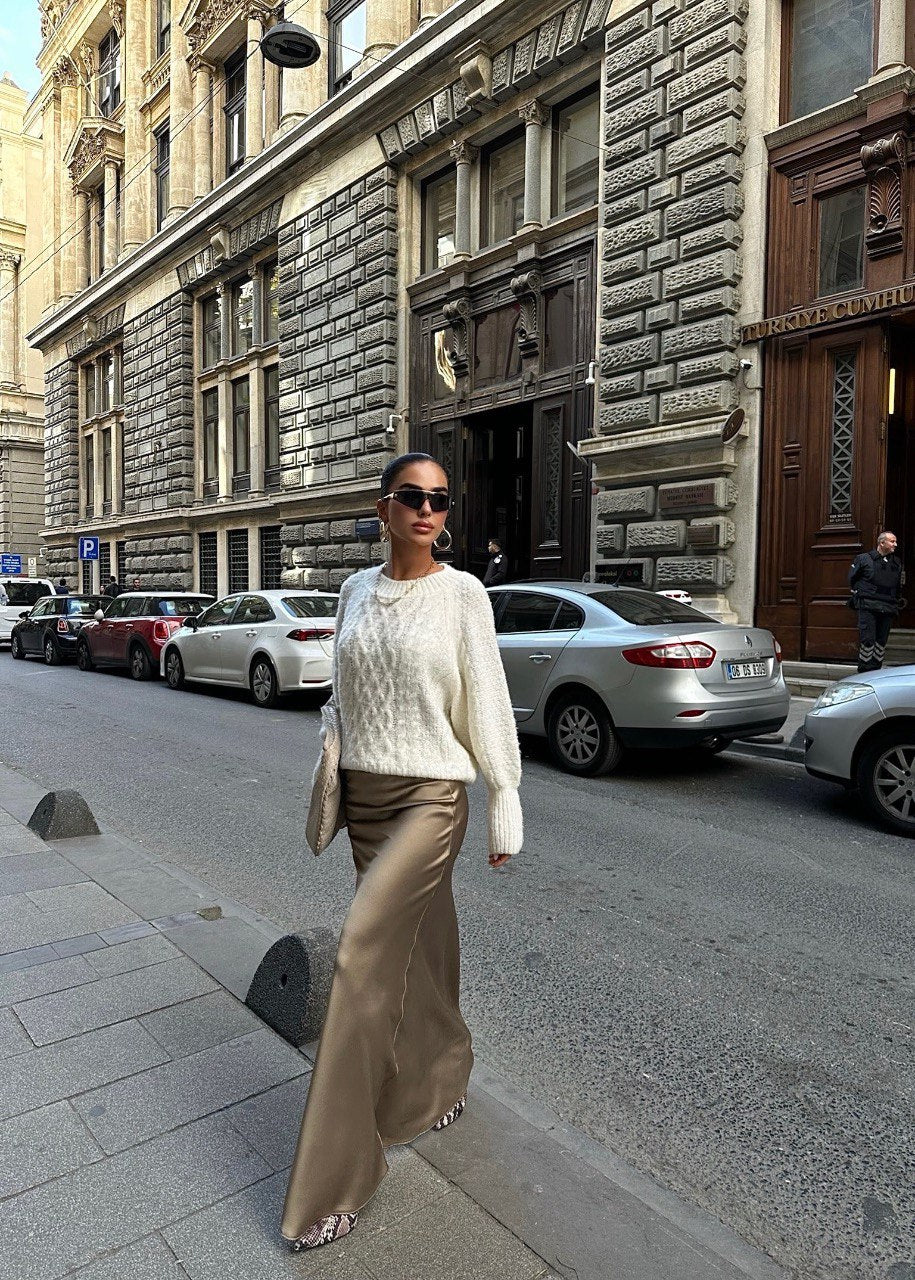 Emmeline Gold Satin Maxi Skirt